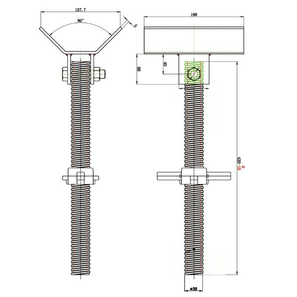 1852, Buet topplate for båtstøtte, inkl. gjengestang, 40,0 cm