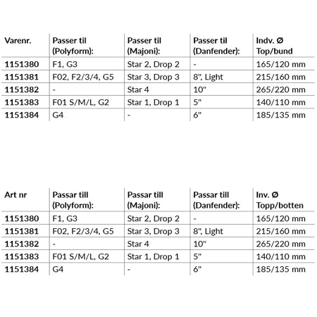 - Innvendig Ø: Topp 185 mm / Bunn 135 mm