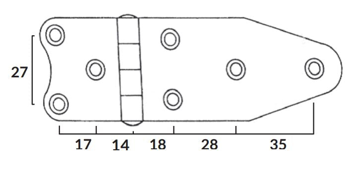 1852, Hengsel RF, 130 x 40 mm, AISI 316