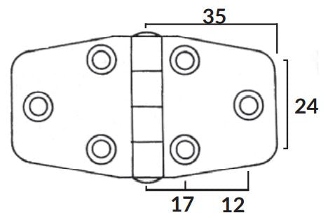 1852, Hengsel RF, 72 x 38 mm, AISI 316