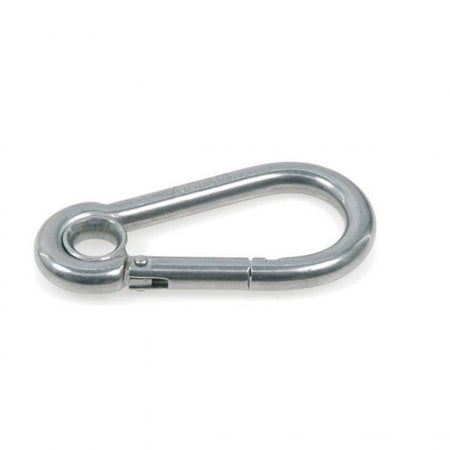 Karabinkroken er utstyrt med et øye som holder de to enhetene adskilt, noe som gjør den ideell for en lang rekke bruksområder, inkludert seiling, klatring og andre utendørsaktiviteter. Den er laget av AISI 316 rustfritt stål, som sikrer motstand mot korrosjon og slitasje.
