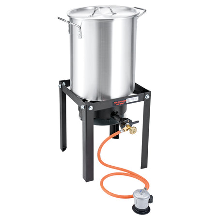 Effektiv krabbegryde med en kapacitet på 30 liter, ideel til tilberedning af skaldyr og store portioner. Sættet inkluderer gasblus med en effekt på 3,8 kW, robust stativ, 700 mbar regulator og 1,2 meter gasslange med regulator. Leveres med aluminiumsgryde (30x40 cm) og indvendig kurv (26x30 cm). CE-godkendt for sikker brug. Perfekt til udendørs madlavning, camping eller båd.Denne 1852 krabbegryde er udviklet til dig, der ønsker en kraftfuld og sikker løsning til udendørs madlavning. Med en kapacitet på 30 liter er den ideel til tilberedning af krabber, muslinger eller store portioner til familie og venner. Det medfølgende gasblus med en effekt på 3,8 kW sikrer hurtig opvarmning, mens det solide stativ giver stabilitet under brug. Sættet leveres komplet med 700 mbar regulator og 1,2 meter gasslange med regulator, så du har alt, hvad du behøver for at komme i gang. Gryden er fremstillet i aluminium med mål på 30x40 cm, og den indvendige kurv (26x30 cm) gør det nemt at løfte skaldyr eller grøntsager op efter kogning. Alle komponenter er CE-godkendte, hvilket giver dig tryghed og sikkerhed ved brug.