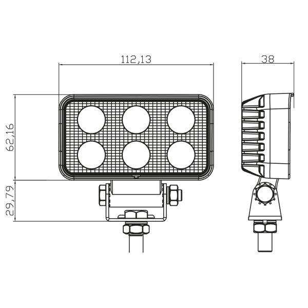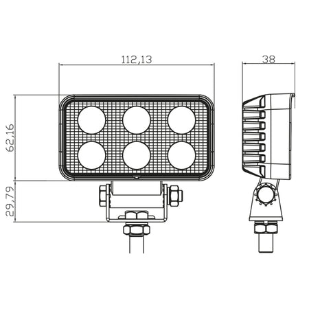 1852, LED-dekklys 10-30V DC, 753 lm, 9W, 6000K, IP67/IP69K, 112 x 62 x 38 mm