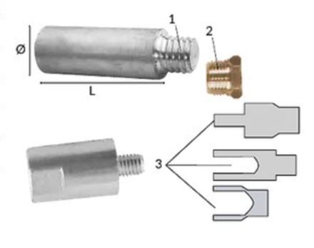 1852, Løs anode for Lombardini motor sink, Ø 15 mm, 1146344, 90802840