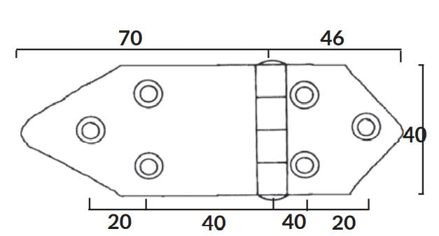 1852, lukehengsel offset 20mm RF, 116x40mm, AISI 316
