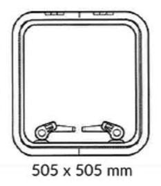 1852, Marineluke lavprofil Alu, utskjæringsmål 505 x 505 mm