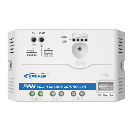 Panelet kan plasseres flatt eller settes opp i vinkel ved hjelp av de integrerte bena, og de medfølgende stroppene gjør det enkelt å feste panelet på plass. Den medfølgende PWM-solregulatoren på 10 A/20 A sørger for effektiv lading av 12V-batteriet ditt, mens USB-utgangene tillater lading av mobiltelefoner og andre enheter.