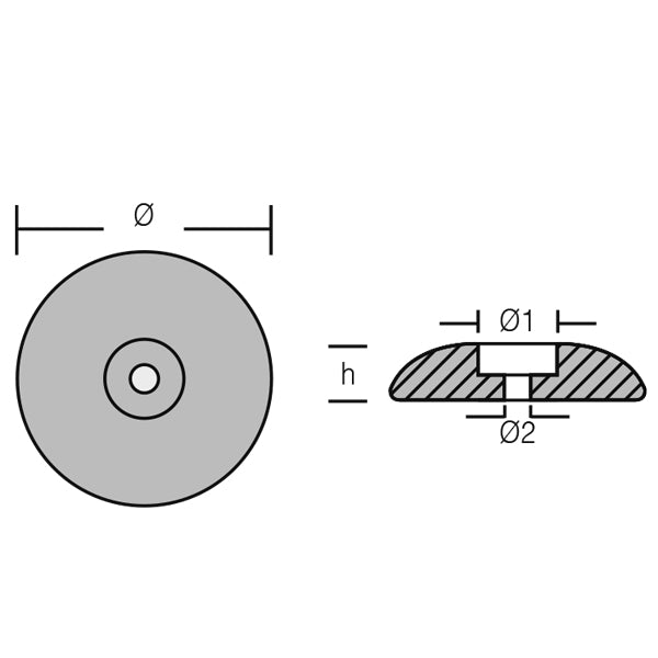 1852, Sink rund anode Ø50mm 83g for Fairline/Sealine, 11mm høy, 20mm Ø1, 6,5mm Ø2