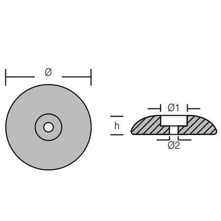 1852, sink rund anode for Fairline/Sealine Ø70mm 203g