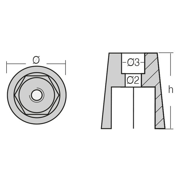 Optimal beskyttelse med sinkanode for sekskantet skaft