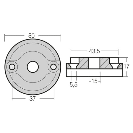 1852, Sinkanode for Vetus baugpropell KGF 35, 37 mm hullavstand, 50 mm Ø, 17 mm høyde