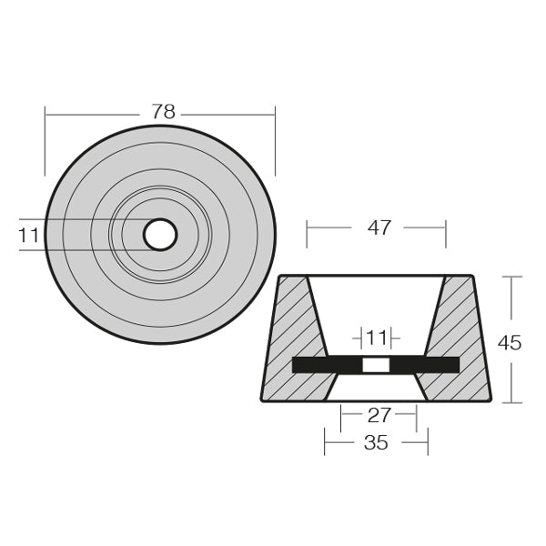 1852, Sinkring til Vetus, Ø 78 mm, Høyde 45 mm