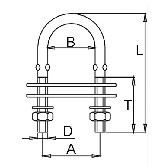 1852, U-brakett Ø8x50mm, innvendig bredde 25mm, lengde 90mm, rustfritt stål