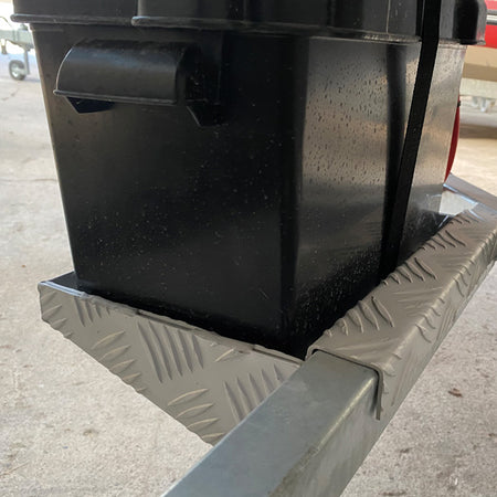Oppgrader tilhengeren din med en robust og funksjonell batteriboksholder i aluminium. Denne holderen er designet for å sikre at batteridekselet ditt er sikkert festet, noe som er avgjørende for både sikkerhet og funksjonalitet under transport.