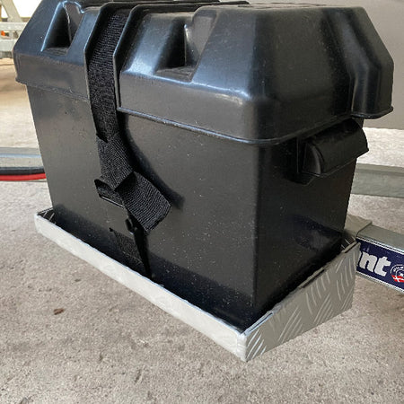 Praktisk batteriboksholder i aluminium for tilhengerfeste