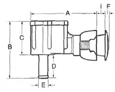 Attwood, Tankventil innfelt med returventil, skrogtykkelse opptil 14 mm, dybde 72 mm, høyde 82 mm, slangetilkobling 16 mm