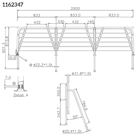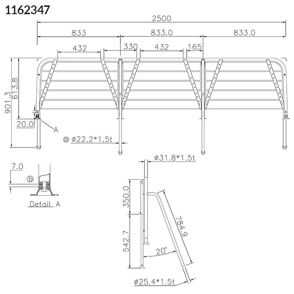 Badeplattform L-170cm D-55cm Ø25mm rør, AISI 316 rustfritt stål med teak