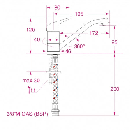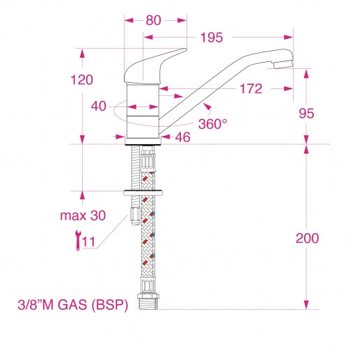 - Slangetilkobling: 3/8” utv. tråd