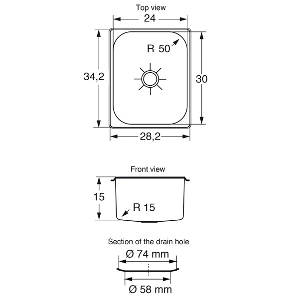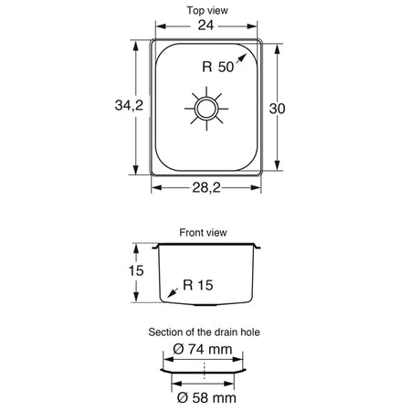 Vasken er laget av rustfritt stål 18/10 med en tykkelse på 0,8 mm, noe som sikrer et robust og langtidsholdbart produkt. Den speilpolerte finishen gir ikke bare et stilig utseende, men sikrer også optimal motstand mot korrosjon og forhindrer vekst av bakterier. Det senkede dreneringshullet muliggjør også effektiv drenering av vannet.