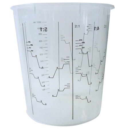 Heavy Duty 1,3L blandekopp er ideell for korrekt måling av 2-komponent maling, tynner, epoksy og polyester. Med sin robuste konstruksjon og gradueringsforhold på innsiden, sikrer den nøyaktighet og effektivitet i arbeidet ditt.