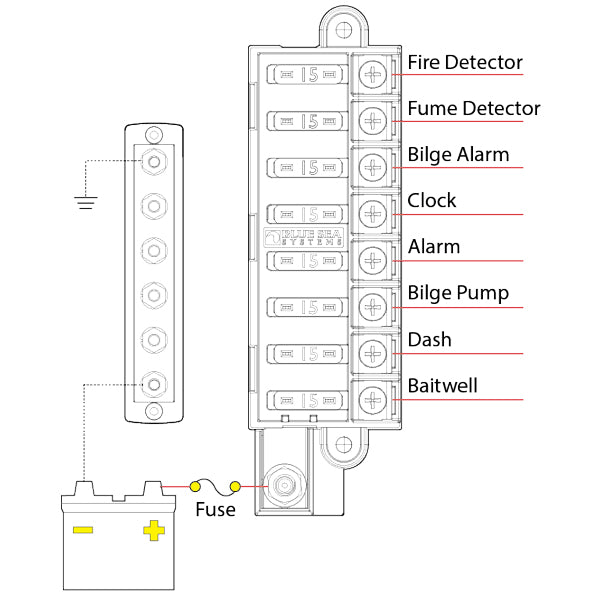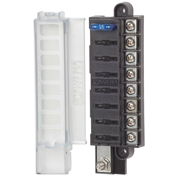 Med plads til 8 bladsikringer giver denne holder mulighed for at samle og organisere flere kredsløb på ét sted. De medfølgende 8 skrivemærker til kredsløbsidentifikation gør det nemt at holde styr på, hvilken sikring der beskytter hvilket kredsløb - en stor fordel ved fejlfinding eller vedligeholdelse.