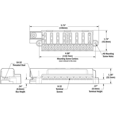 Det isolerende dæksel opfylder ABYC/USCG-isoleringskravene, hvilket sikrer høj elektrisk sikkerhed. De fortinnede kobberbusser og sikringsklemmer giver god elektrisk forbindelse og modstandsdygtighed mod korrosion. Sikringsholderen accepterer både ring- og snapgaffelterminaler, hvilket giver fleksibilitet ved installation.