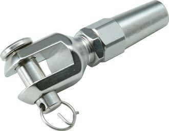 Denne terminalen er laget av rustfritt stål og sikrer holdbarhet og motstand mot belastninger. Den er perfekt for både funksjonelle bruksområder, for eksempel spennkonstruksjoner, og for arkitektoniske formål, for eksempel utstillinger. Med en diameter på 8 mm passer den til de fleste standard ståltråder.