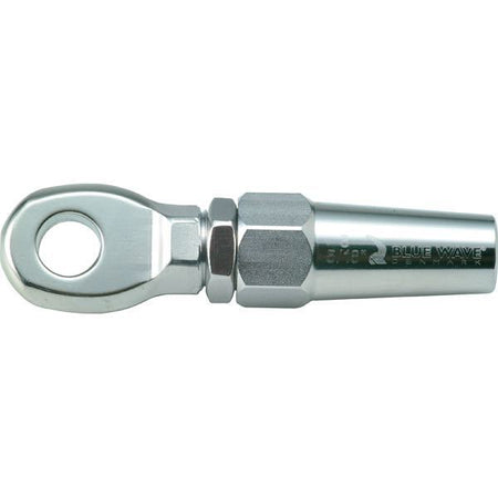 Blue Wave presenterer en rullefri øyeterminal i rustfritt stål som kombinerer funksjonalitet med holdbarhet. Denne terminalen er ideell for å sikre ståltråden i en fast posisjon, noe som gjør den perfekt for både praktiske og estetiske formål. Enten du trenger å stabilisere en mast eller bruke den til visningsformål, tilbyr denne terminalen en pålitelig løsning uten behov for spesialverktøy.