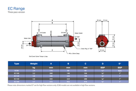 Bowman, Oljekjøler EC 80 1/2" Olje, Vann 45 mm, 4,0 kW, 174 mm