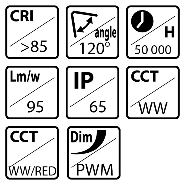- Lysfarge: Varm hvit (3000 Kelvin) og rødt nattlys