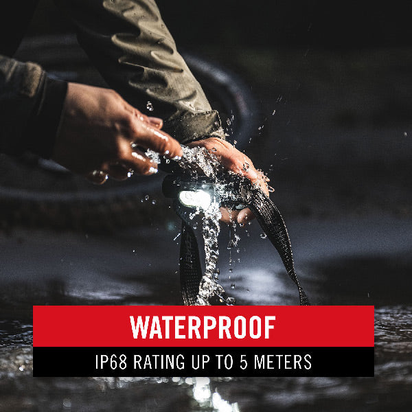 Med en vandtæthed på op til 5 meter og LED-farverne hvid og rød, kan du stole på, at denne lampe præsterer, uanset om det er vådt eller tørt. Det tiltbare og aftagelige lygtehoved giver dig mulighed for at justere lyset præcist, hvor du har brug for det.