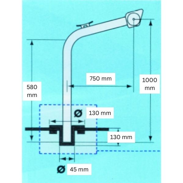 David til joller RF stål maks 85kg, 2stk, 1000x750mm, Ø40mm