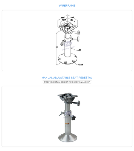 Den lille stolkonsollen med svivel lar deg justere høyden fra 43 til 63 cm, slik at du kan finne den mest komfortable stillingen. Den solide basen med en diameter på 23 cm gir stabilitet, mens den elegante anodiserte aluminiumsfinishen gir båten et moderne preg.