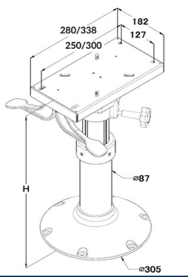 ESM, Ocean stolkonsoll med skyveskinne og svingbar, 43-63 cm, 360°