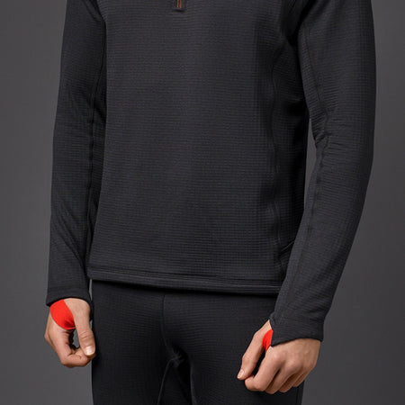 Toppen er laget av et innovativt termisk strikket stoff med 4-veis stretch som gir deg optimal bevegelsesfrihet. Det børstede interiøret føles behagelig mot huden, mens glidelåsen i halsen gir justerbar ventilasjon.
