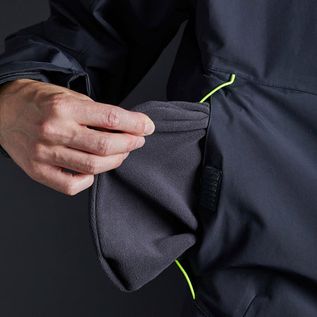 Jakken er laget av 2-lags belagt stoff som gir en slitesterk vannavvisende og pustende finish. De fullt tapede sømmene sikrer en vanntett forsegling, mens det ikke-absorberende og hurtigtørkende fôret gir ekstra komfort. Enten du er på vannet eller på land, vil denne jakken være en pålitelig partner.