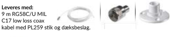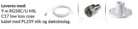 - Kabel: 9 m RG58C/U MIL C17 lavtapskoaks