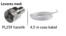 - Inkludert: PL259 hannkontakt og 4,5 m koaksialkabel