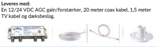- 20 meter koaksialkabel: Gir fleksibilitet i installasjonen