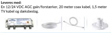 - 12/24 VDC AGC-forsterker: Forbedrer signalstyrken
