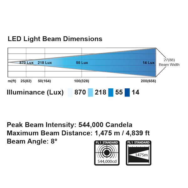 - Rekkevidde: Opptil 1400 meter med 0,25 lux (tilsvarer en klar natt med fullmåne)
