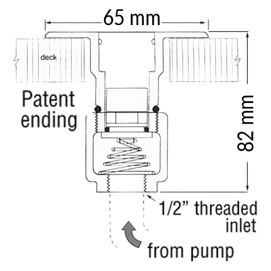 Hurtigkobling for dekktetning, AISI 316, ½" innvendig gjenge, H82 mm, Ø65 mm