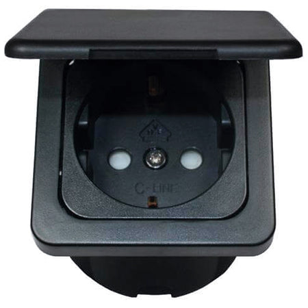 SeaTec, Indbygningsstik 220V med klap, sort - 60mm x 65mm