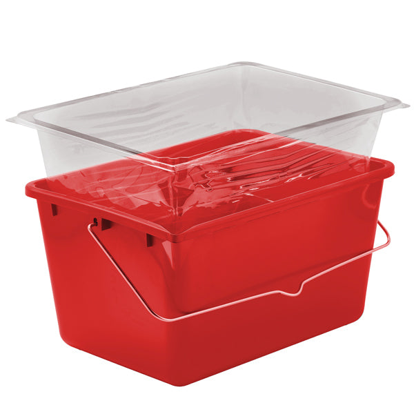 Dette rektangulære indlæg er fremstillet i transparent plast og designet til nem udskiftning og rengøring ved arbejde med maling. Indlægget passer direkte i spand 1603174 og gør farveskift hurtigere, samtidig med at spandens levetid forlænges. Produktet er kun selve indlægget og inkluderer ikke spanden. En praktisk løsning til professionelle, der ønsker effektiv håndtering af forskellige malingstyper.Dette rektangulære malerspand-indlæg er udviklet i transparent, formstabil plast og konstrueret til at ligge præcist i spand 1603174. Indlægget gør det muligt at skifte farve hurtigt uden behov for omfattende rengøring, hvilket optimerer arbejdsgangen ved både større og mindre maleropgaver. Den gennemsigtige plast sikrer tydelig visuel kontrol af malingens mængde og konsistens under arbejdet. Indlægget er udformet, så det slutter tæt mod spandens vægge, hvilket reducerer spild og giver en ren og kontrolleret arbejdsproces. Da produktet er et separat indlæg, leveres det uden spand og fungerer som en udskiftelig indsats, der forlænger spandens anvendelsestid og effektiviserer drift i miljøer med hyppige farveskift.