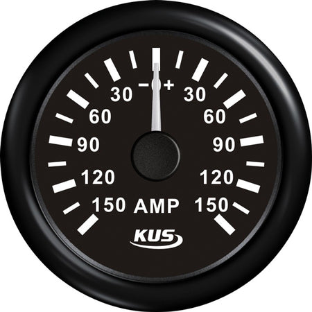 KUS, Amperemeter sort 150 Amp shunt, 12/24 V, IP67, Ø 52 mm