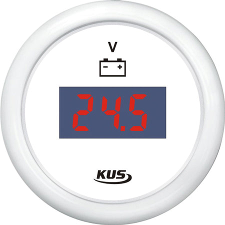 Kus, Digital Voltmeter 9-32V, Hvit, IP67, Ø52 mm