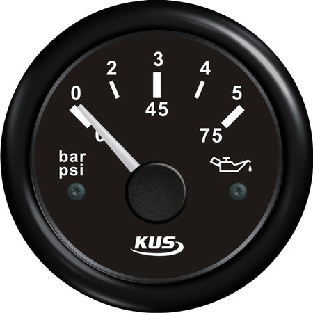 Kus, Oljetrykkmåler 0-5bar, sort, Ø 52mm, IP67, 12/24V