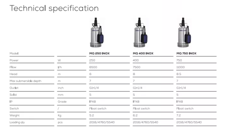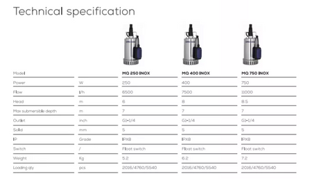 Lensepumpe 12000 l/t RF, 230V, 550 W, IPX8, MQ550 Inox