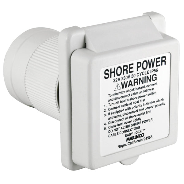 Marinco, Landstrømsindtag Firkantet 32A 230V - IP56 Vandtæt med Easy Lock System