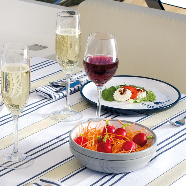 Opplev den perfekte kombinasjonen av holdbarhet og design med Marine Business dype tallerkener. Disse platene er ideelle for både hverdags og spesielle anledninger når du er på vannet. Med sitt bruddsikre melaminmateriale og praktiske sklisikre ring er de laget for å tåle utfordringene som følger med livet til sjøs.